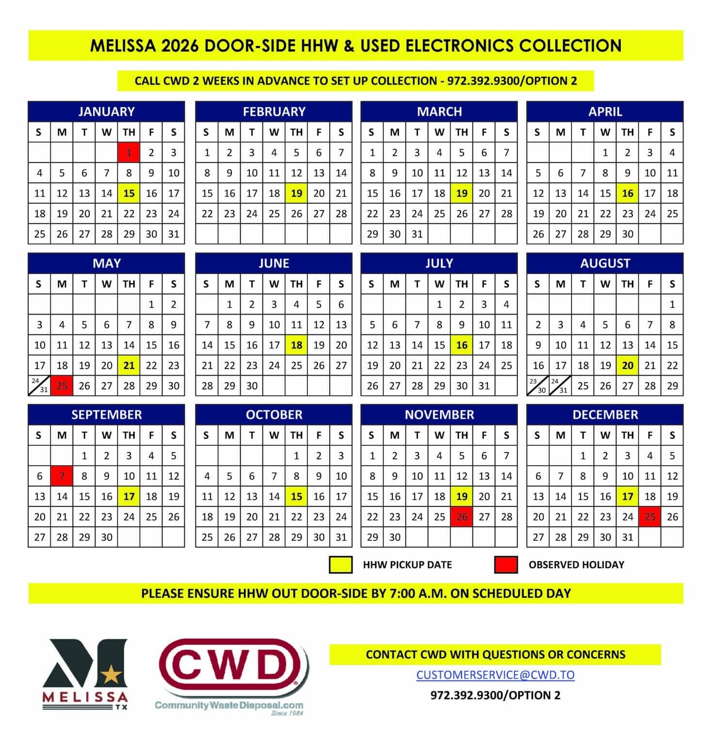2026 Melissa HHW Collection Schedule